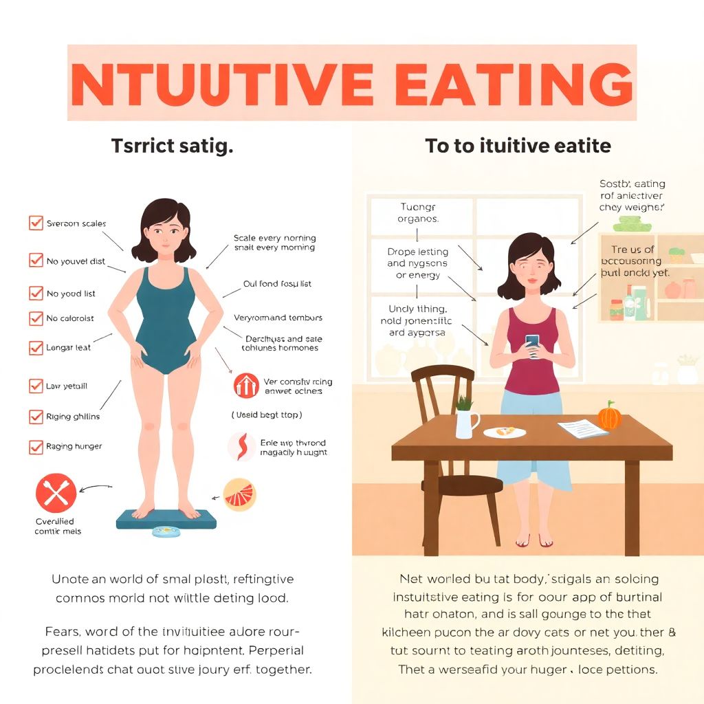 Иногда чистое интуитивное питание для человека с длинной историей жёстких диет — слишком резкий разворот. Тогда логично временно оставить небольшие структурные рамки: например, примерный план по белку и количеству приёмов пищи, но при этом отпускать выбор конкретных продуктов и порций на усмотрение тела. Это гибрид: структура без насилия. Так вы получаете предсказуемость и возможность похудеть, не загоняя себя в очередной гормональный тупик, а постепенно возвращая чувствительность к сигналам тела.